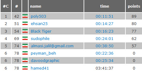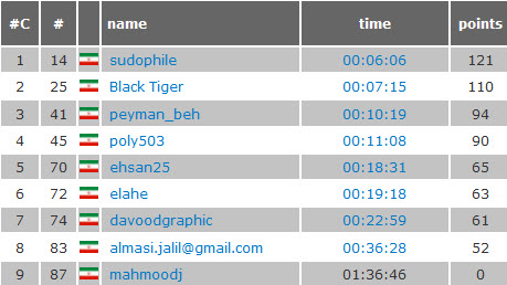 ایرانی ها هم حضور خوبی داشتند، اما با وجود اینکه من تذکر دادم حواستون باشه اشتباه نکنید، خیلی از بچه ها، یکی دو باری اشتباه کردند. در این میون فقط poly503 بود که به نظر من خوب حل کرد و باز هم نشون داد که خانم ها دقتشون بیشتره!