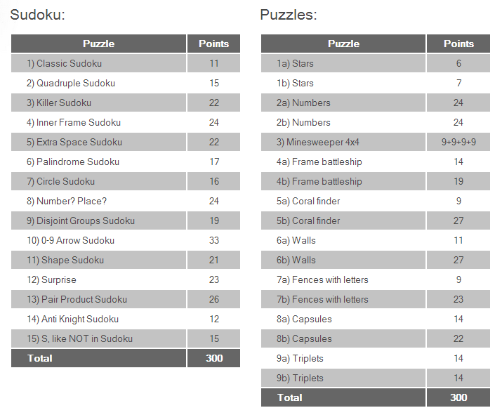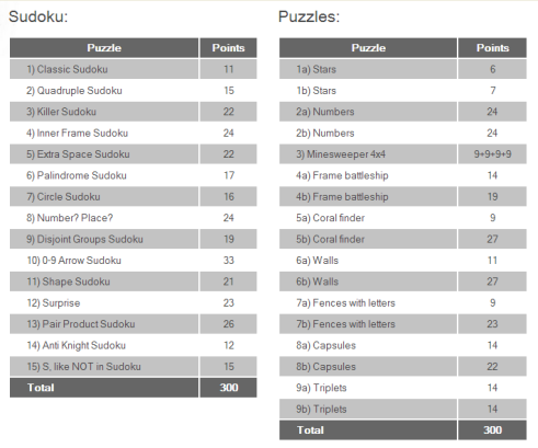 امتیاز جداول مسابقه نیز به قرار جدول زیر می باشد: