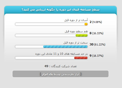 اولین نظرسنجی مربوط به سطح فینال این دوره بود که شما آنرا چطور ارزیابی می کنید؟