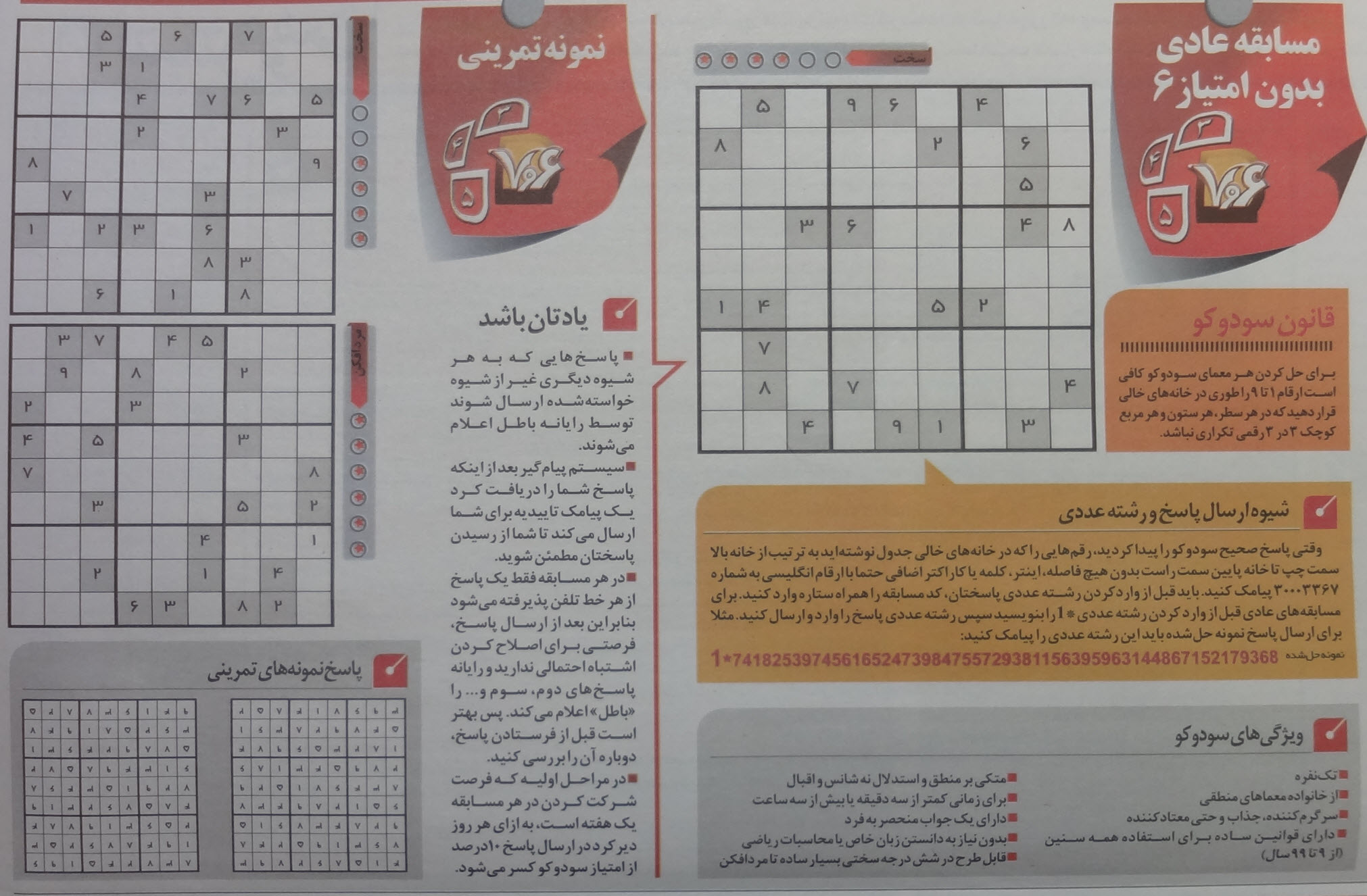 این هفته هم در ویژه نامه نوع دیگری از جداول سودوکو درج شده است، اگر شما هم روزنامه جام جم رو مطالعه می کنید؛ قطعا دیده اید که پای ثابت جداول سودوکوی جام جم، سودوکو سامورایی هست.